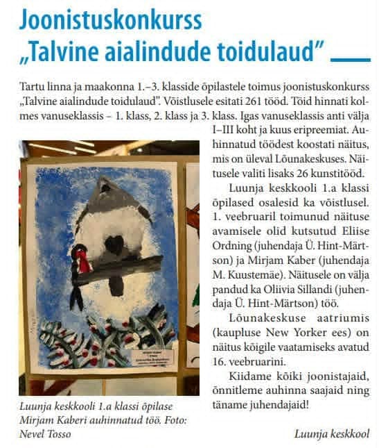 Dronootika Erahuvikooli õpilane Kira Šarina võitis joonistus konkursil “Metsloom” eriauhinna! Luunja Jahiseltsi, Päästeameti ja Eesti Jahimeeste Seltsi korraldatud joonistuskonkursil „Metsloom” saavutas Dronootika Erahuvikooli huviringi õpilane Kira Šarina suurepärase tulemuse! Konkursile…